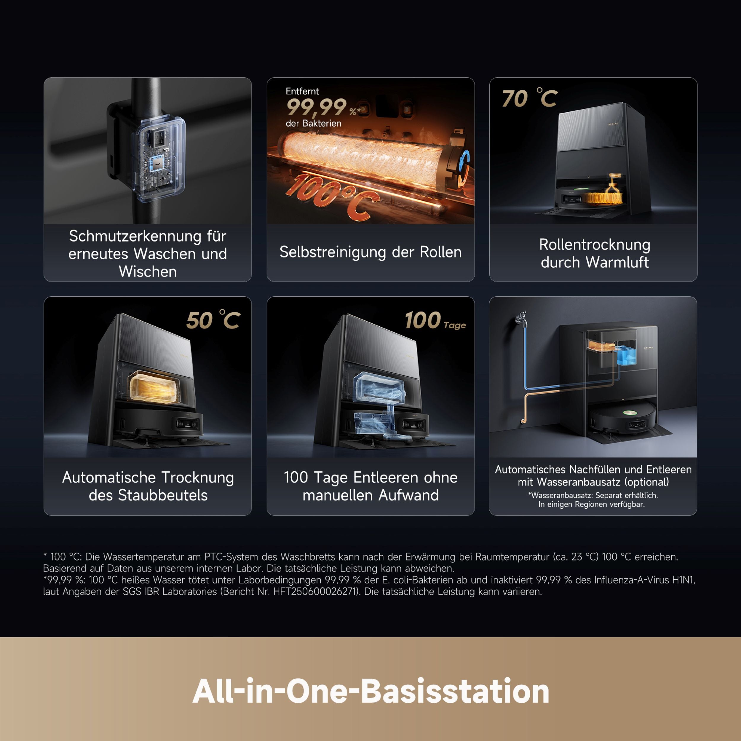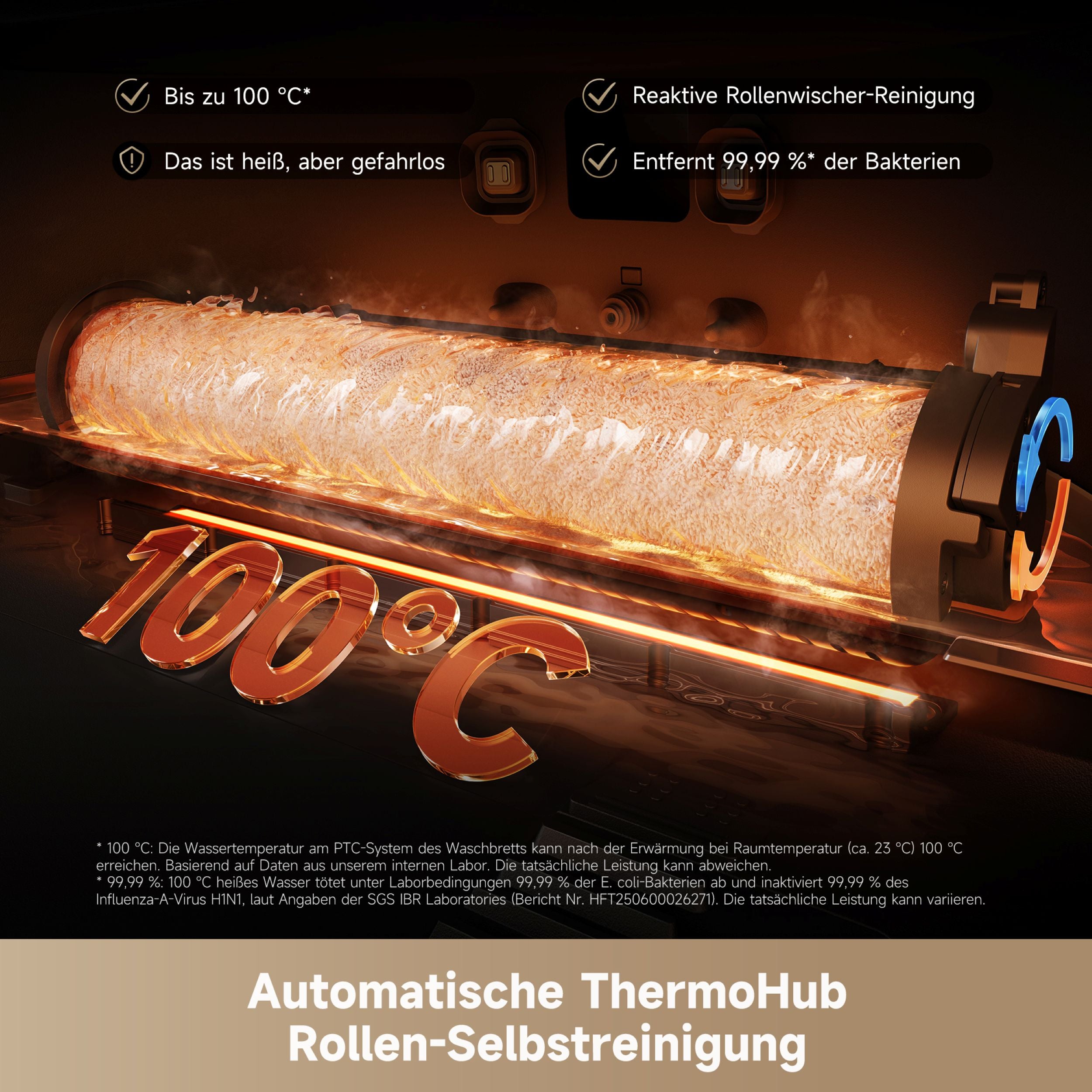 ✓ Automatische Mopp-Reinigung: 100 °C heißes Wasser, 70 °C Heißlufttrocknung