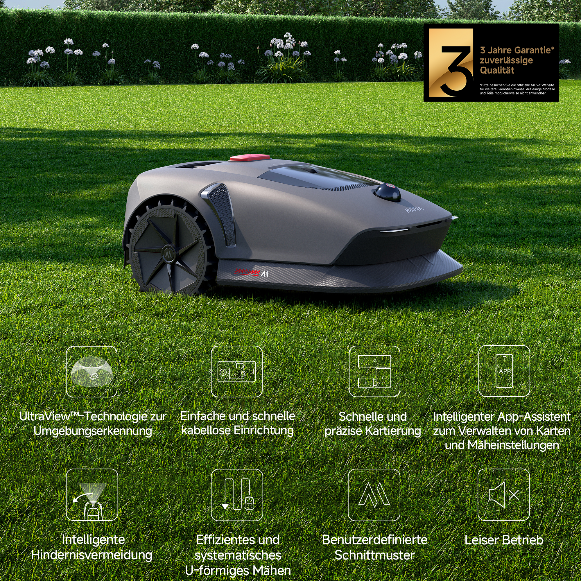 ✓ Intelligente Hindernisvermeidung und Regensensorik