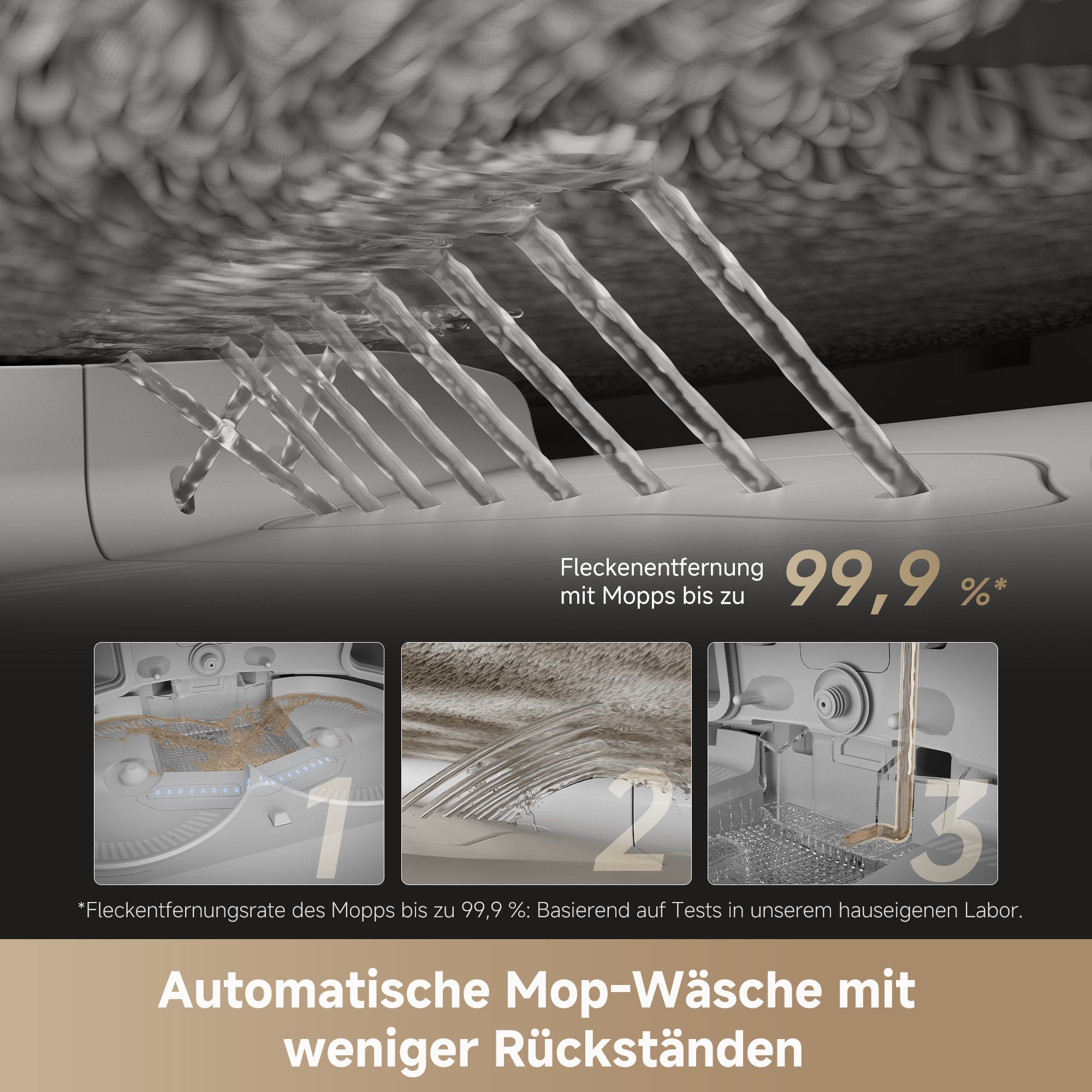Saug- und Wischroboter mit automatischer Leerung und Selbstreinigung der Wischmopps