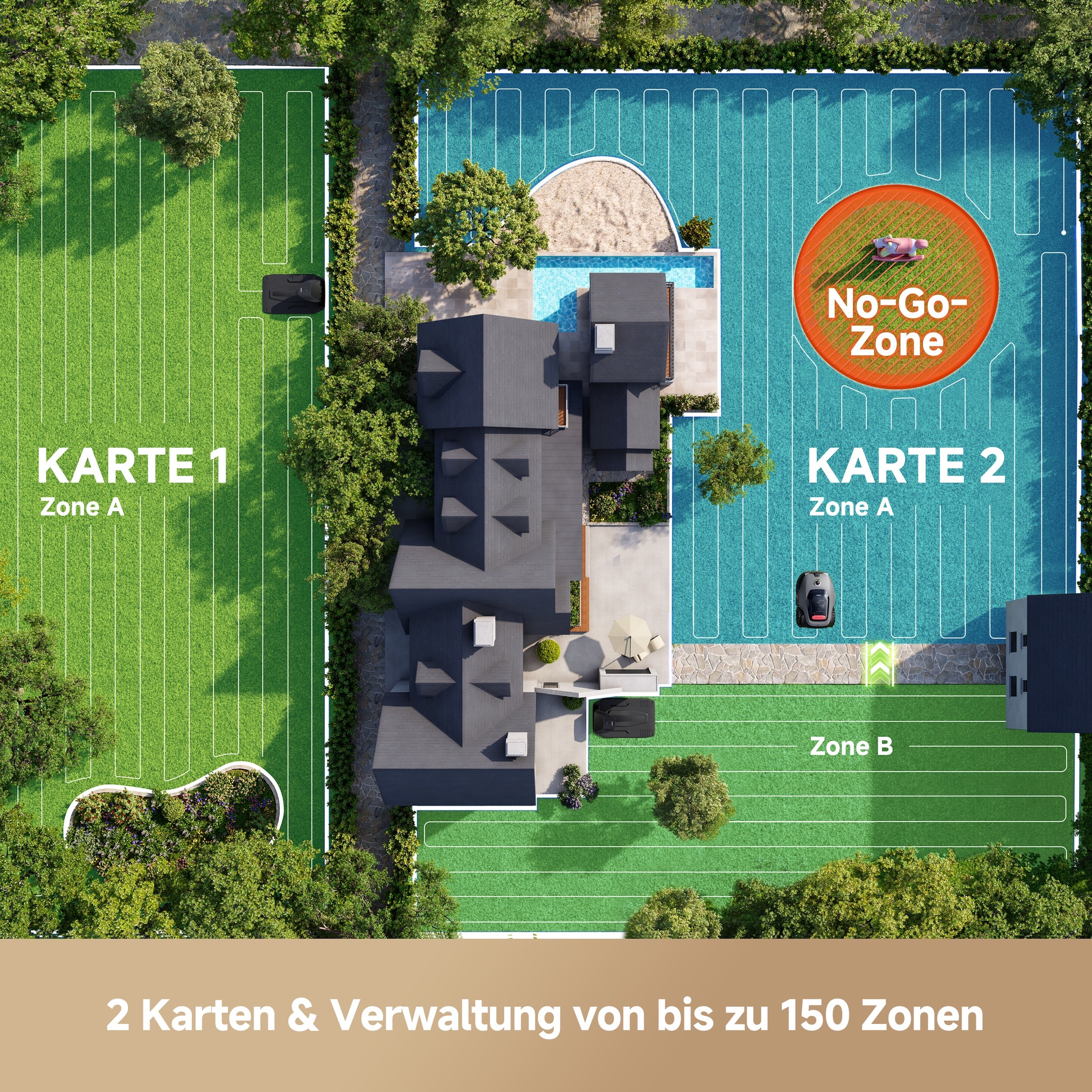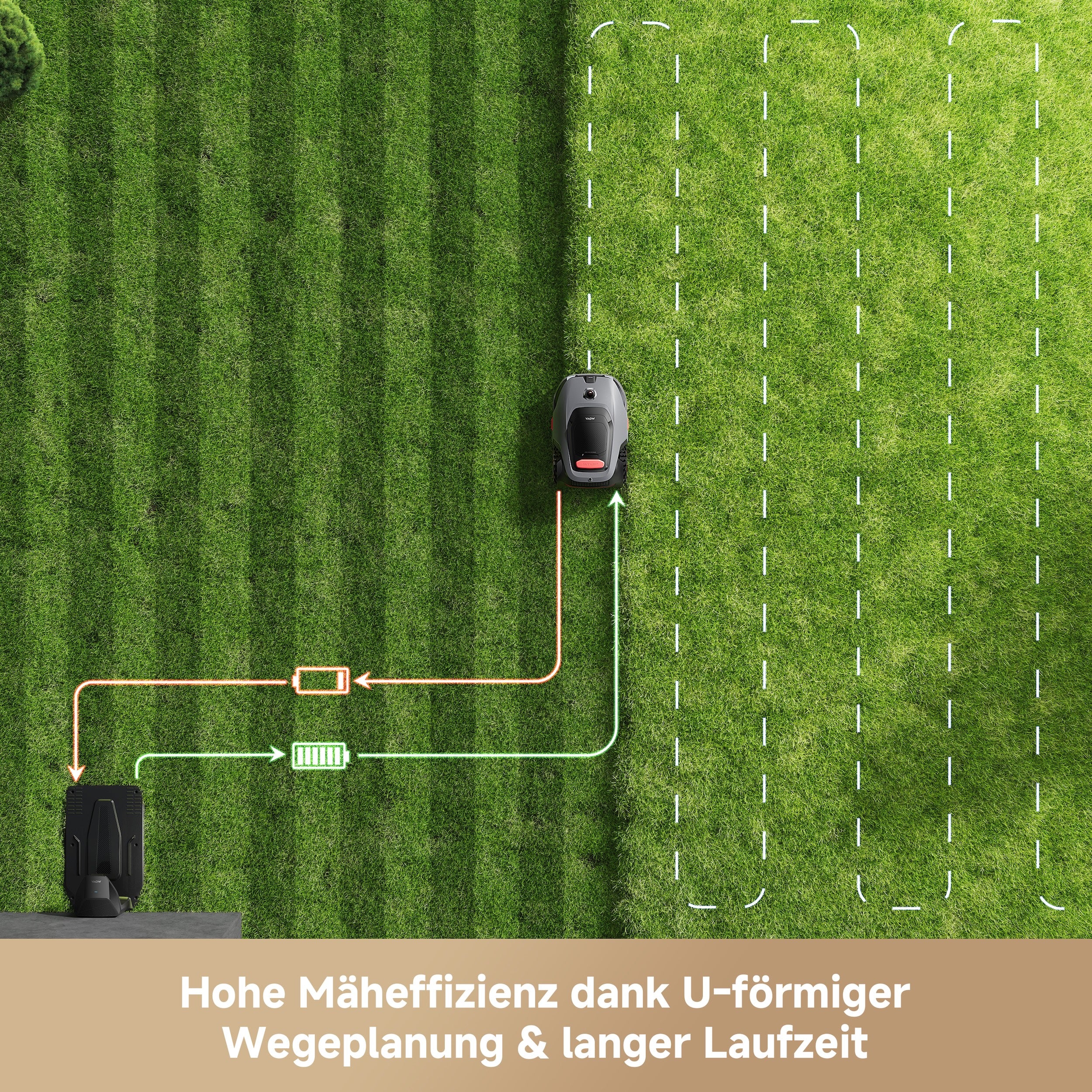 ✓ U-förmige Wegplanung für effizientes Mähen